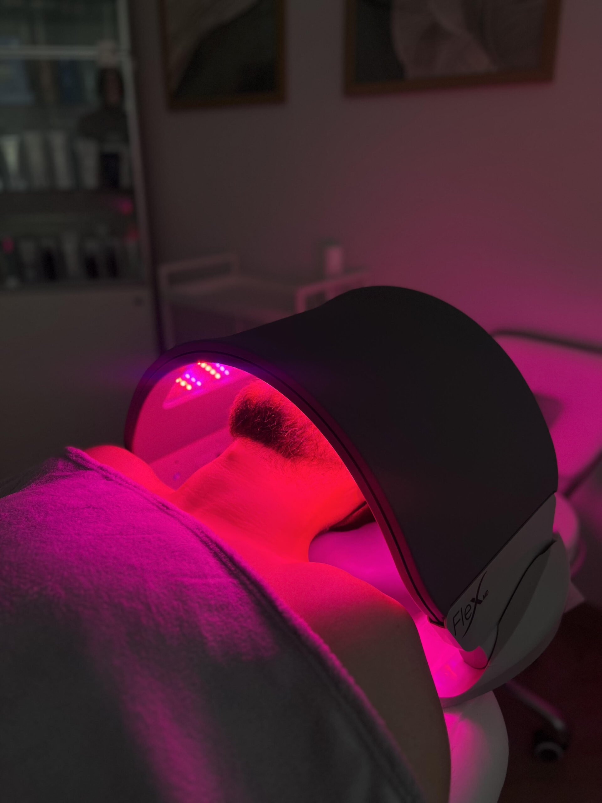 W zabiegach terapeutycznych wykorzystuję bardzo efektywną terapię światłem LED (Lampa medyczna Dermalux Flex MD ® z certyfikatem FDA)